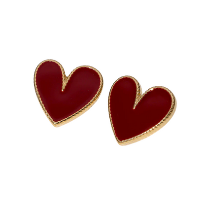 Love Bug Red Heart Studs – Gold-Trimmed Enamel Earrings